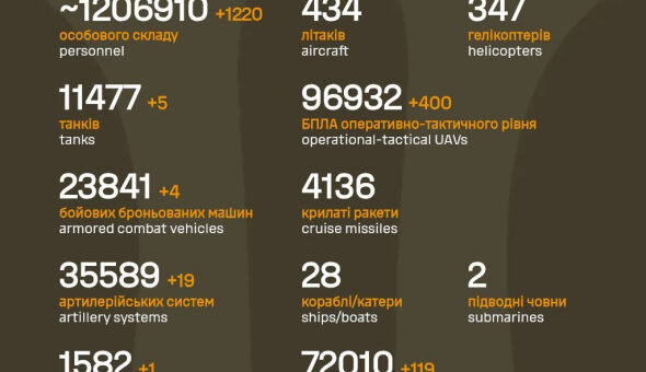 Втрати російських окупантів у війні проти України 30 грудня сягнули 1 206 910 осіб. За минулу добу ЗСУ ліквідувати 1 220 окупантів, повідомляє Генеральний штаб ЗСУ. “Дані уточнюють”, – зазначили в повідомленні. ЧИТАЙТЕ ТАКОЖ:...