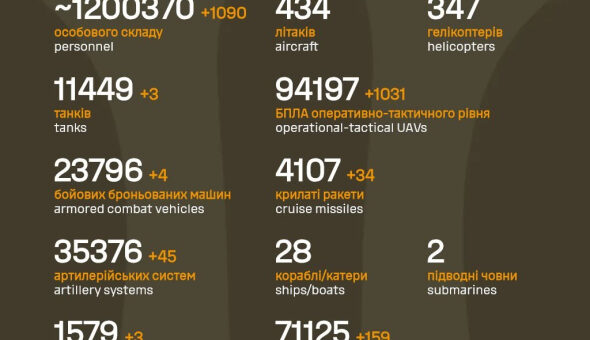 Розпочалася 1400-та доба широкомасштабної збройної агресії РФ проти України. Захисники стійко стримують натиск окупантів, завдаючи ворогу значних втрат. Протягом минулої доби на фронті зафіксовано 126 бойових зіткнень, повідомив Генеральний штаб ЗСУ 24 грудня. “Учора...