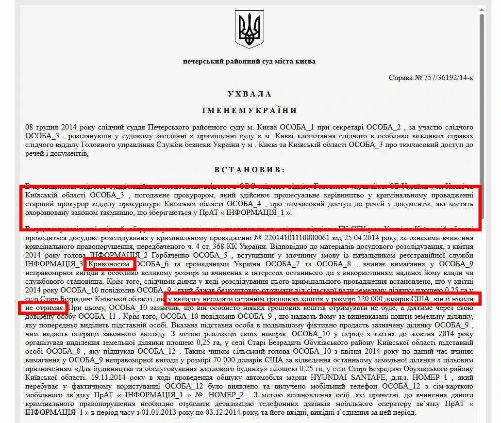 Експрокурор опублікував лінк на відповідну ухвалу суду від 08.12.2014, у якій чітко згадується прізвище Кривоноса.
