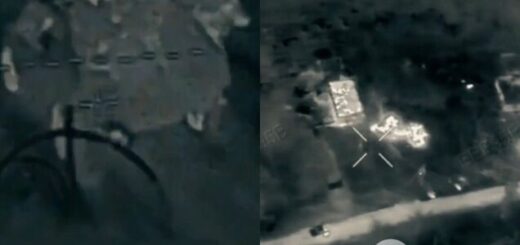 І ракетні, і дронові пускові установки замасковані у стандартних морських контейнерах, на яких можна побачити напис: “Морське відродження китайської нації та концепція спільного океанського майбутнього для людства“.